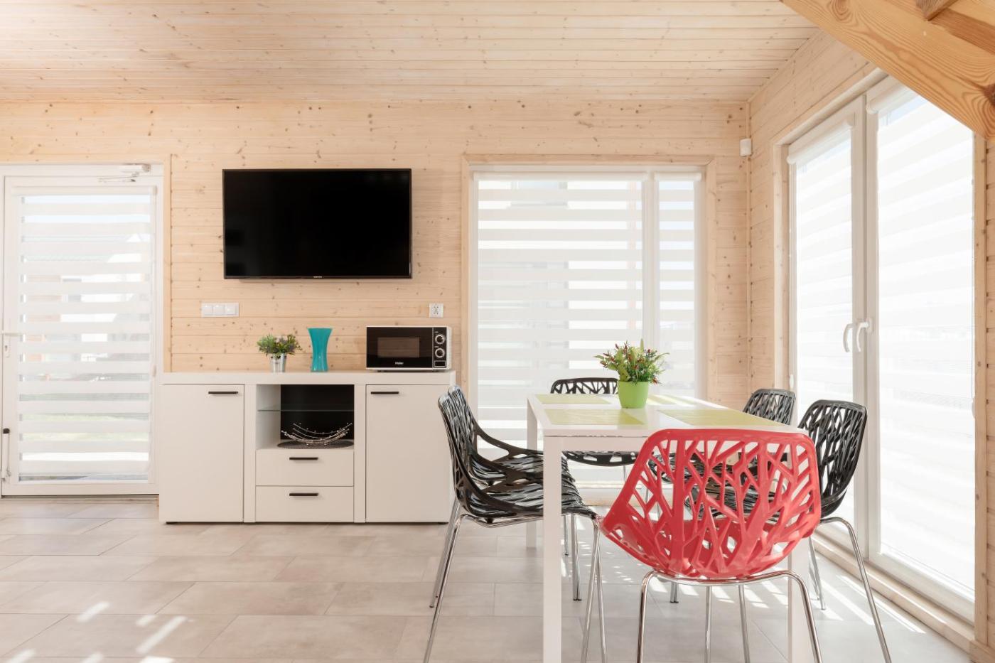Domek z 2 sypialniami. Boasting a private entrance, this air-conditioned chalet features 1 living room, 2 separate bedrooms and 1 bathroom with a walk-in shower and a hairdryer. Guests will find a stovetop, a refrigerator, a dishwasher and kitchenware in the well-equipped kitchen. The chalet also comes with a barbecue. Featuring a terrace, this chalet also features a washing machine, a coffee machine and a flat-screen TV with cable channels. The unit has 6 beds. Domek - 8 osobowy. Powierzchnia pokoju ok.: 56 mkw. ;