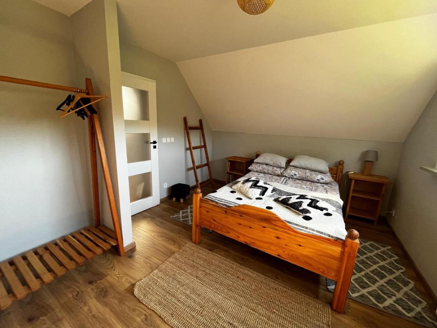 Dom z 2 sypialniami. The fireplace is the standout feature of this holiday home. The well-equipped kitchen has a stovetop, a refrigerator, a dishwasher and kitchenware. Boasting a terrace with garden views, this holiday home also features a private entrance and a flat-screen TV with streaming services. The unit has 4 beds. Dom wakacyjny - 4 osobowy. Powierzchnia pokoju ok.: 80 mkw.